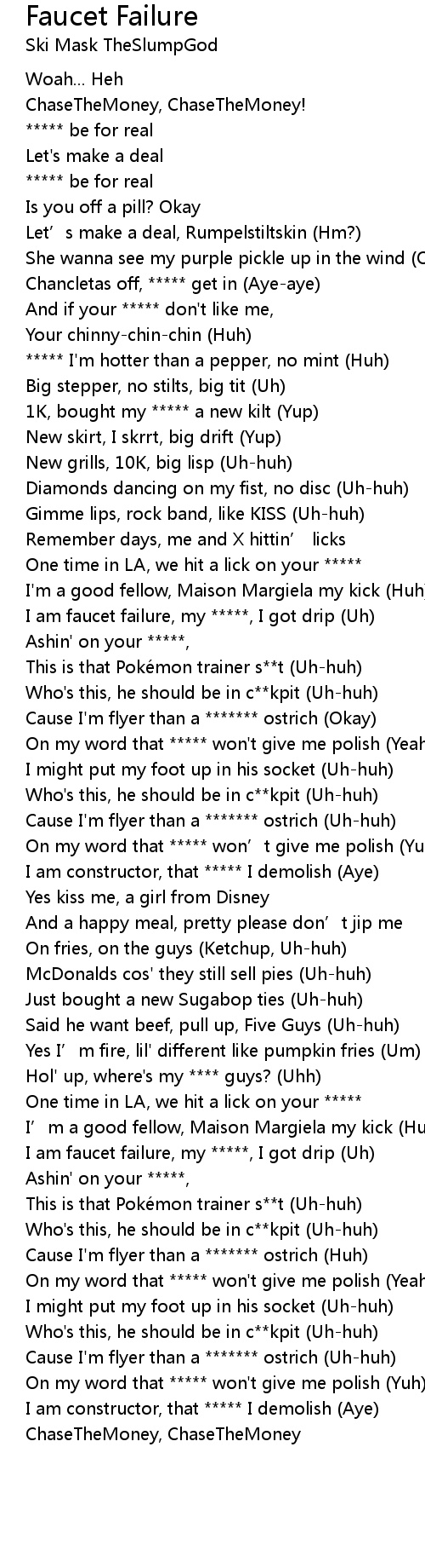 | [00:52.53] | I am faucet failure, my , I got drip Uh |