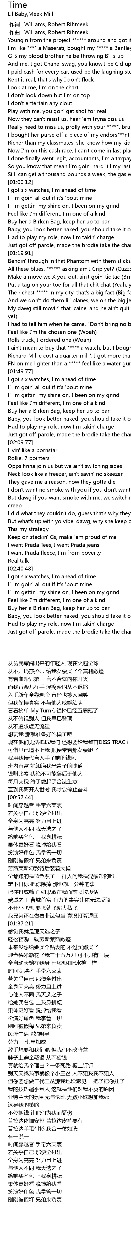 | [01:50.36] | I got six watches, I'm ahead of time |
