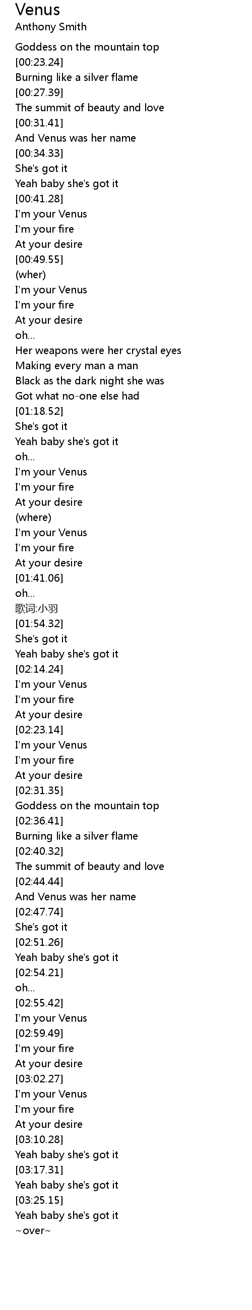 | [00:53.34] | I'm your Venus |