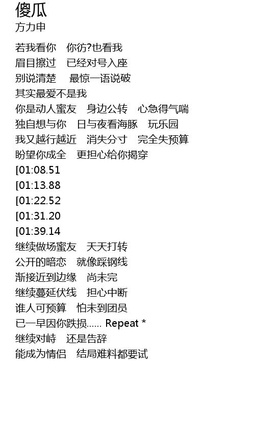 | [03:10.30][01:39.14] | 来成为情侣 你若明白请试试* |