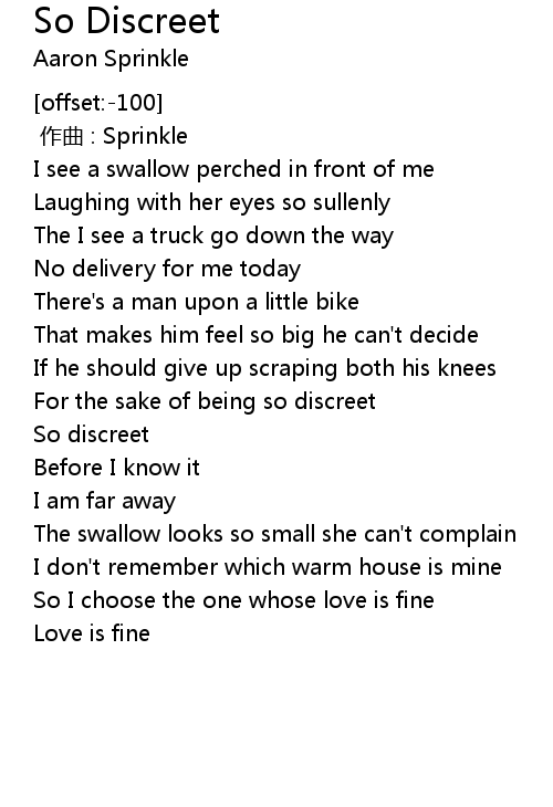 | [01:27.86] | For the sake of being so discreet |