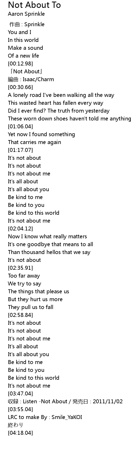 | [00:15.66] | 「Not About」 |