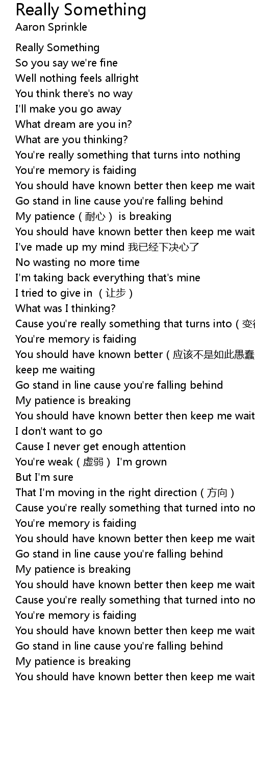 | [01:14.00] | Cause you're really something that turns into(变得) nothing |