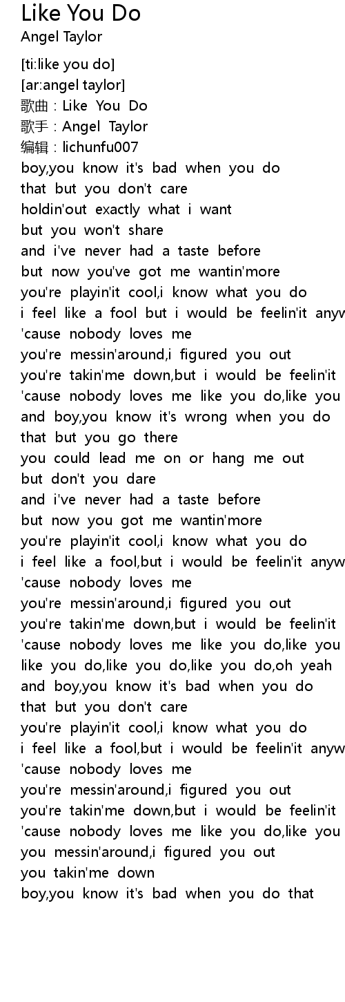 | [02:01.08] | like you do, like you do, like you do, oh yeah |
