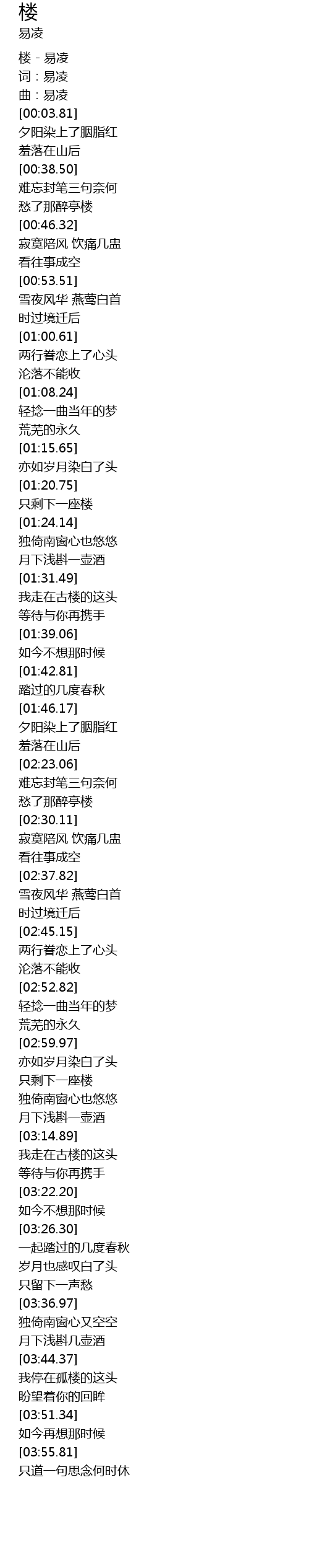 | [00:43.53] | chóu le nà zuì tíng lóu |