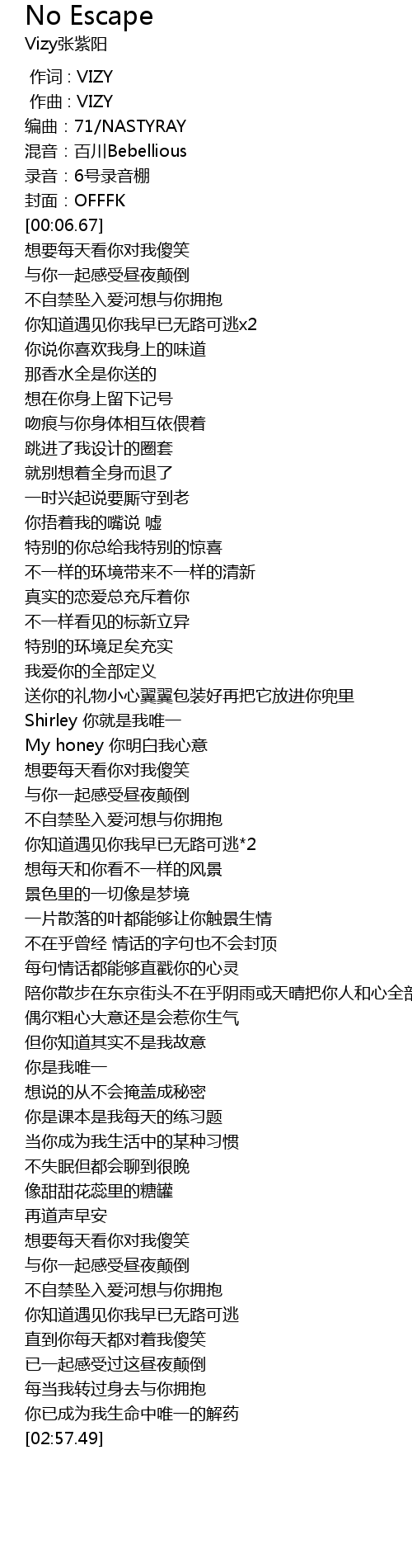 | [00:00.57] | 编曲:71/NASTYRAY |