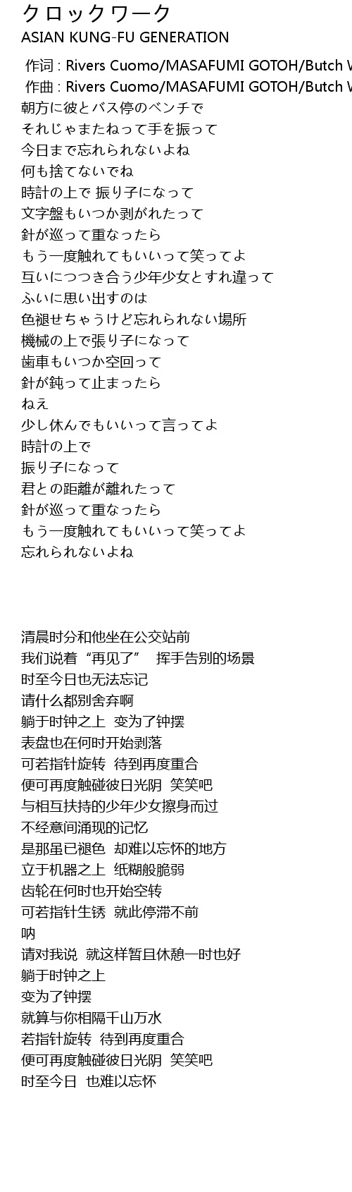 | [00:01.000] | zuo qu : Rivers Cuomo MASAFUMI GOTOH Butch Walker |