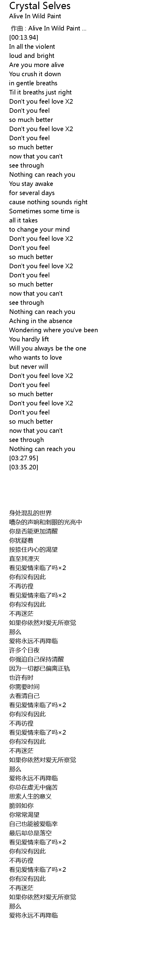 | [03:03.30] | Don't you feel love X2 |