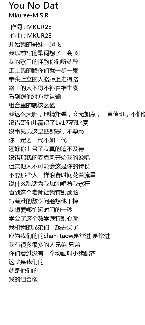 | 歌曲 | You No Dat |