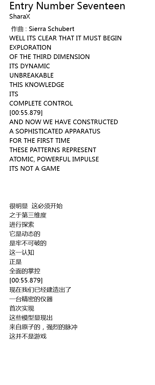 | 歌曲 | Entry Number Seventeen |