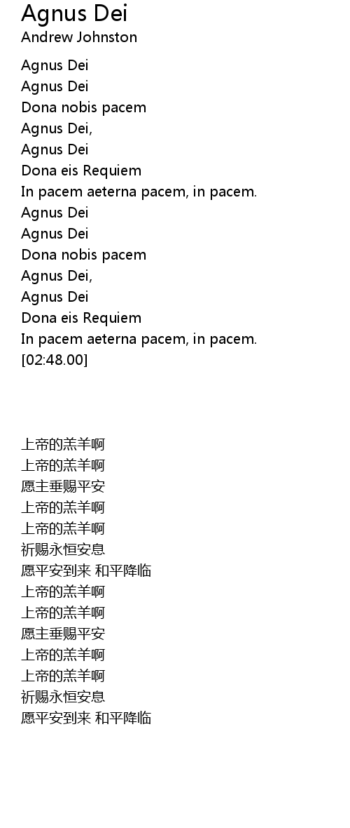 | [00:58.34] | In pacem aeterna pacem, in pacem. |