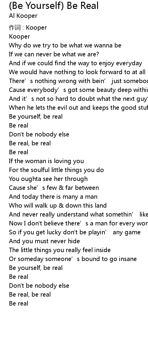 | 歌曲 | (Be Yourself) Be Real |