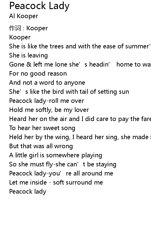 | Peacock ladyyou' re all around me | |
