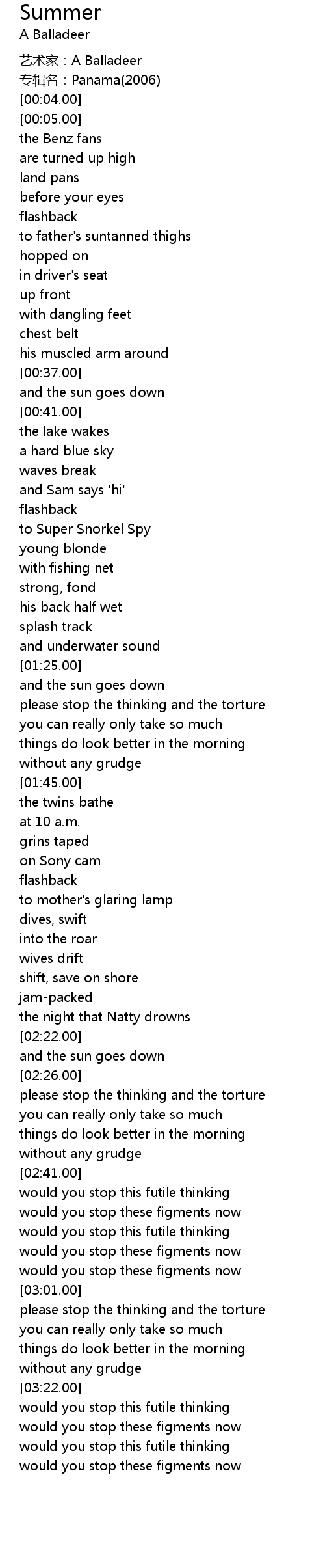 | [01:30.00] | please stop the thinking and the torture |