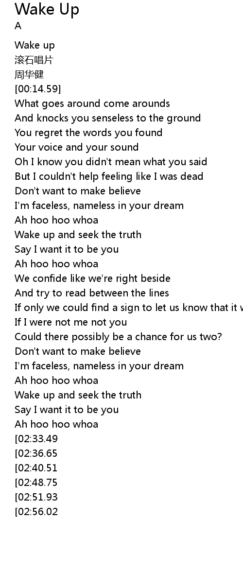 | [03:20.30][02:48.75] | Wake up and seek the truth |
