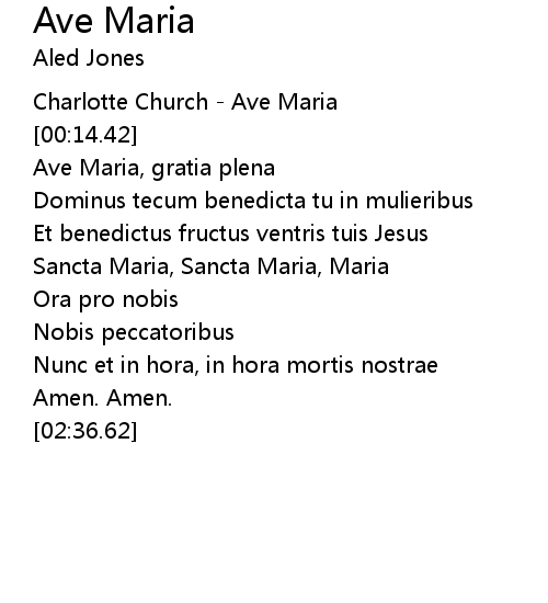 | [00:16.42] | Ave Maria, gratia plena |