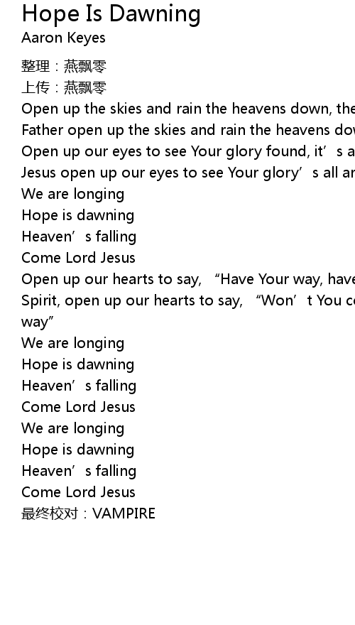 | [00:33.80] | Father open up the skies and rain the heavens down on us |