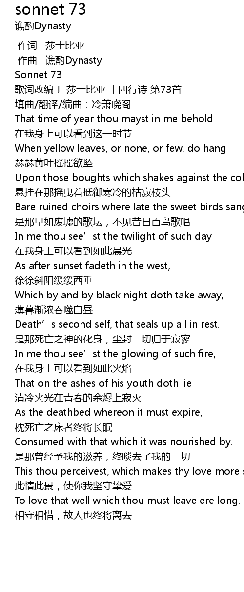 | [00:04.999] | 歌词改编于 莎士比亚 十四行诗 第73首 |