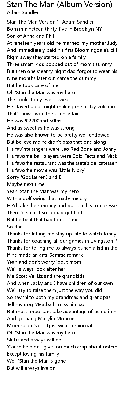 | [00:00.111] | Stan The Man Version Adam Sandler |