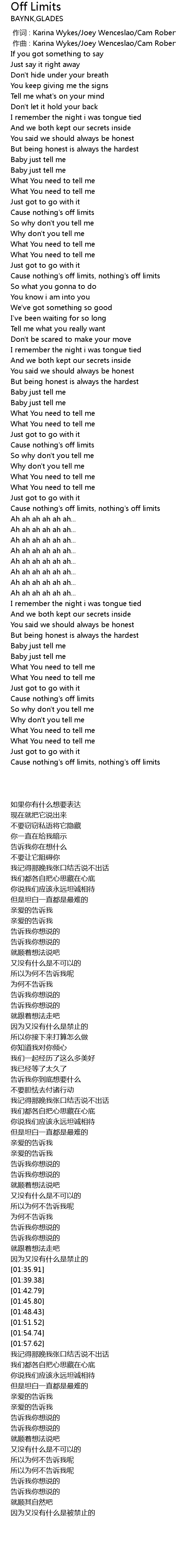 | [00:44.71] | Cause nothing's off limits, nothing's off limits |