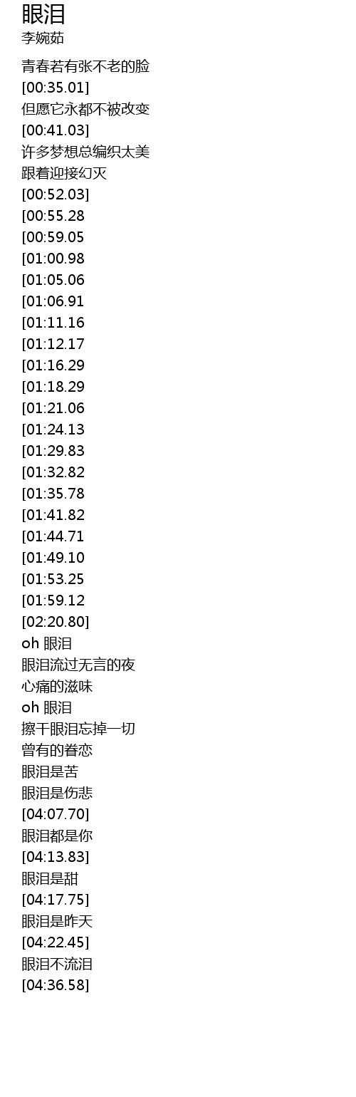 | [02:53.00][01:21.06] | oh 眼泪 |
