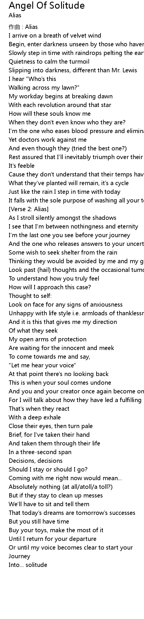 | 歌曲 | Angel Of Solitude |