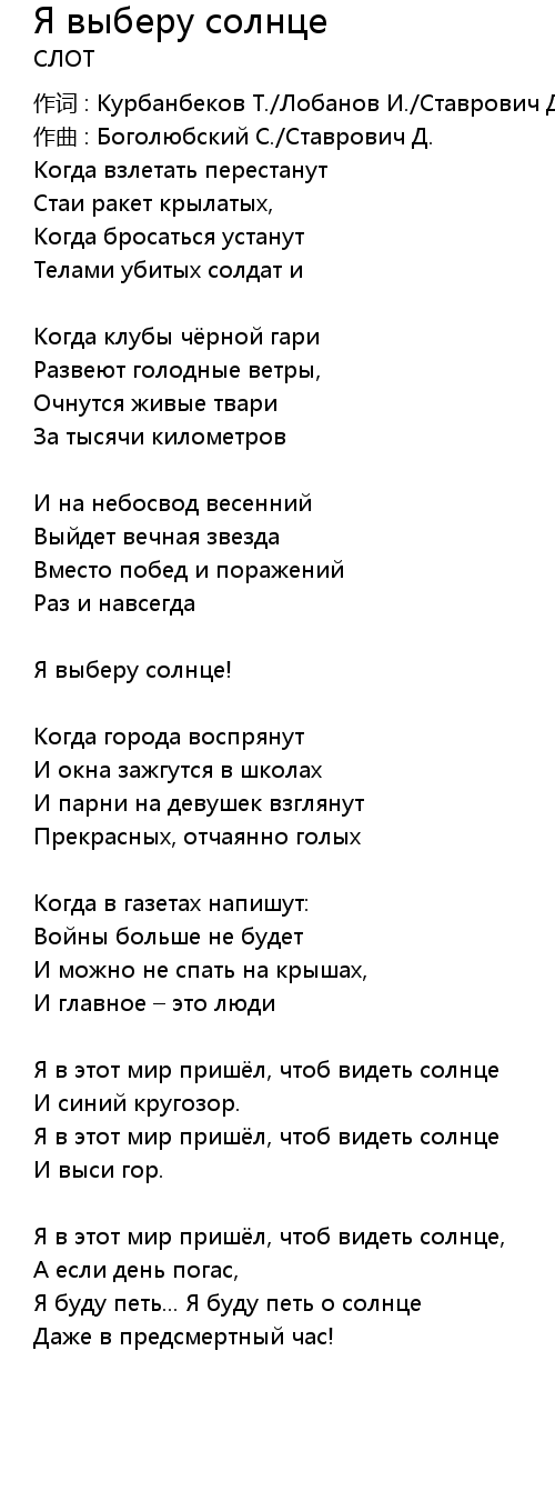 Я буду петь... Я буду петь о солнце |
