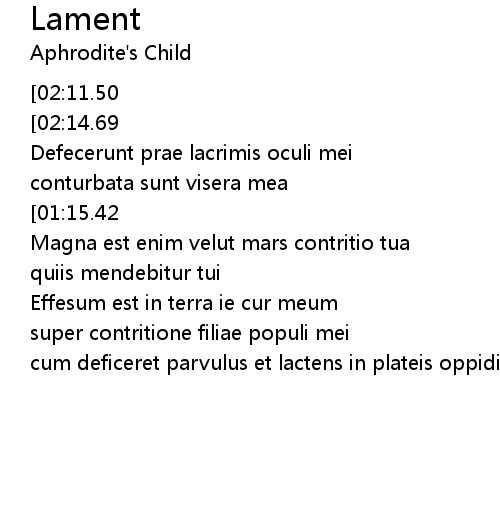 | [00:53.33] | Defecerunt prae lacrimis oculi mei |