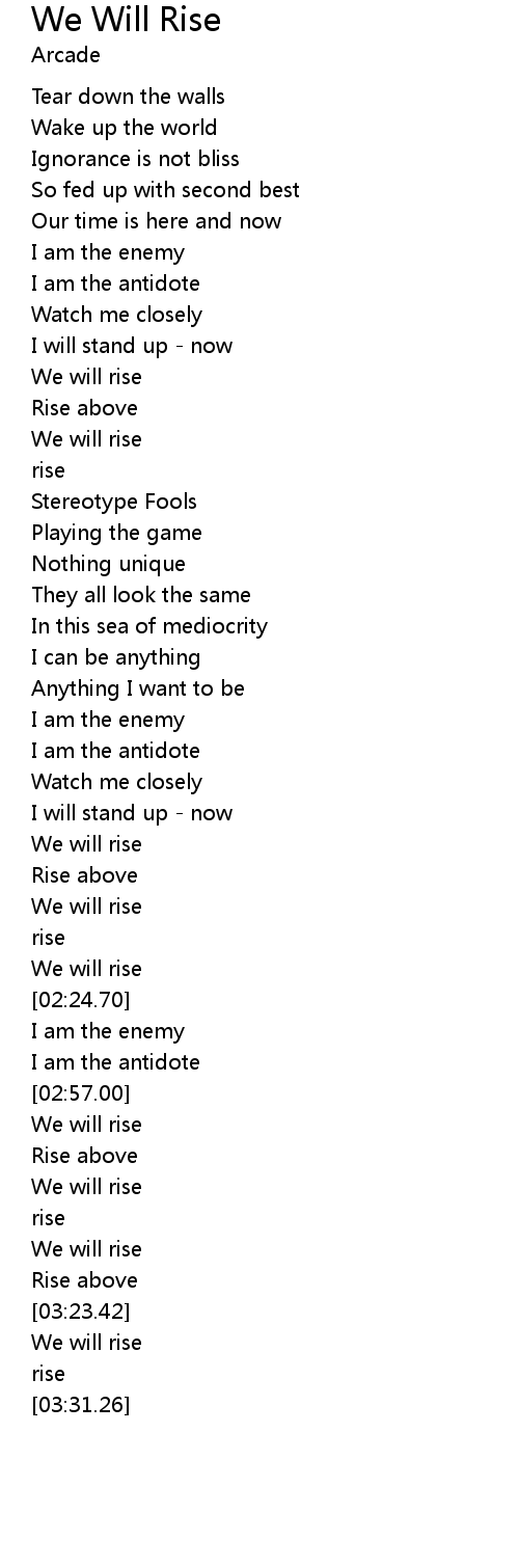 | [02:23.08] | We will rise |