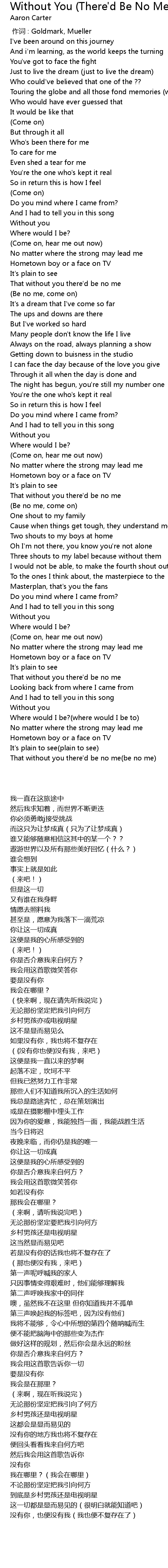 | 歌曲 | Without You (There'd Be No Me) |