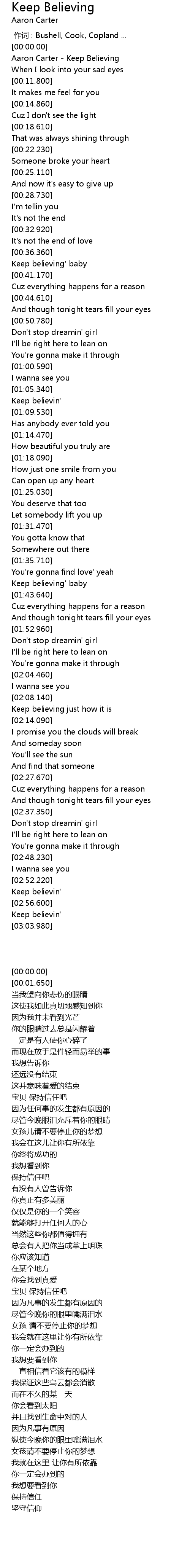 | [00:01.650] | Aaron Carter - Keep Believing |
