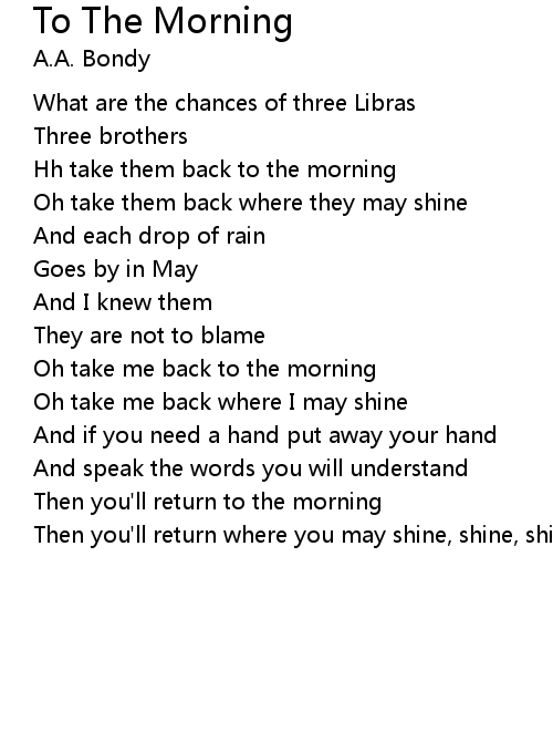 | Hh take them back to the morning | |