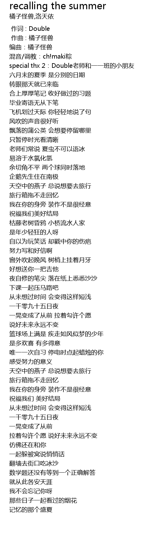 | [00:13.669] | special thx 2:Double老师和一一班的小朋友 |