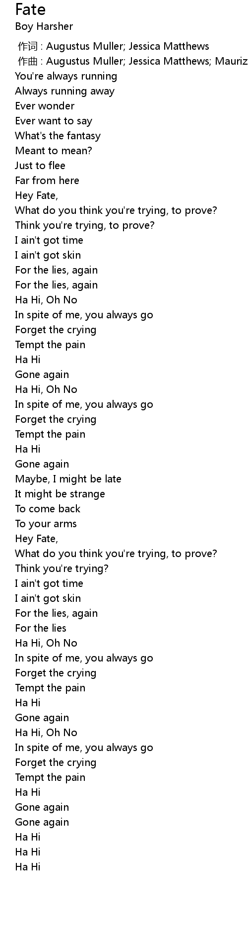 | [00:00.000] | 作词 : Augustus Muller; Jessica Matthews |