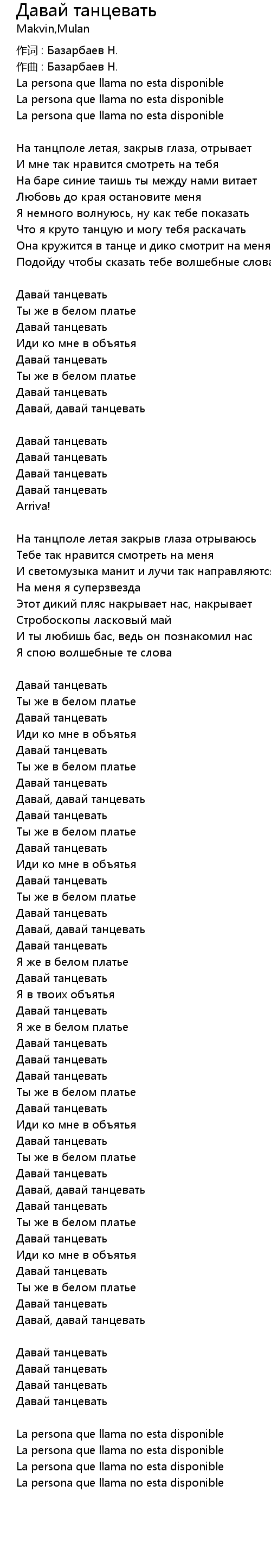 Давай танцевать 歌词