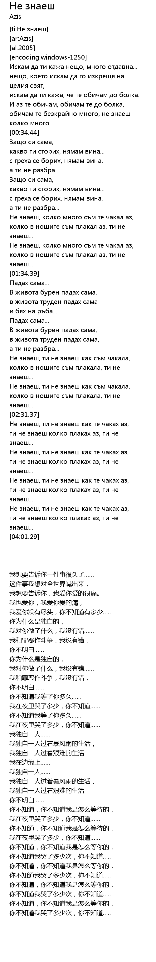 | [03:38.87] | ти не знаеш колко плаках аз, ти не знаеш... |