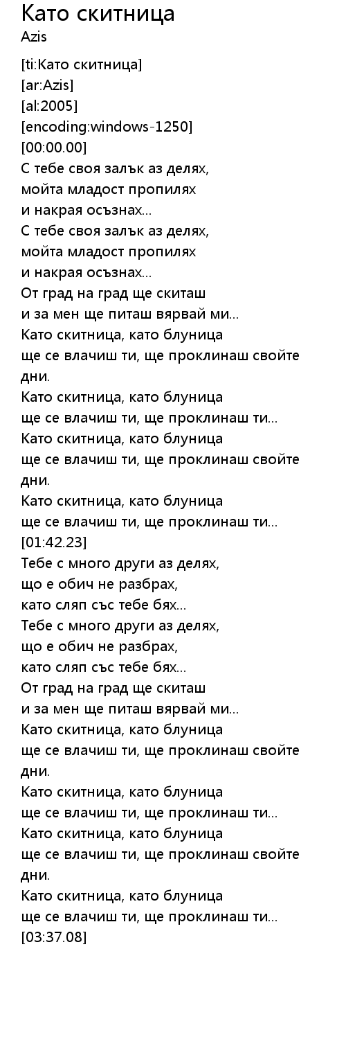 [00:56.57] ще се влачиш ти, ще проклинаш свойте дни.