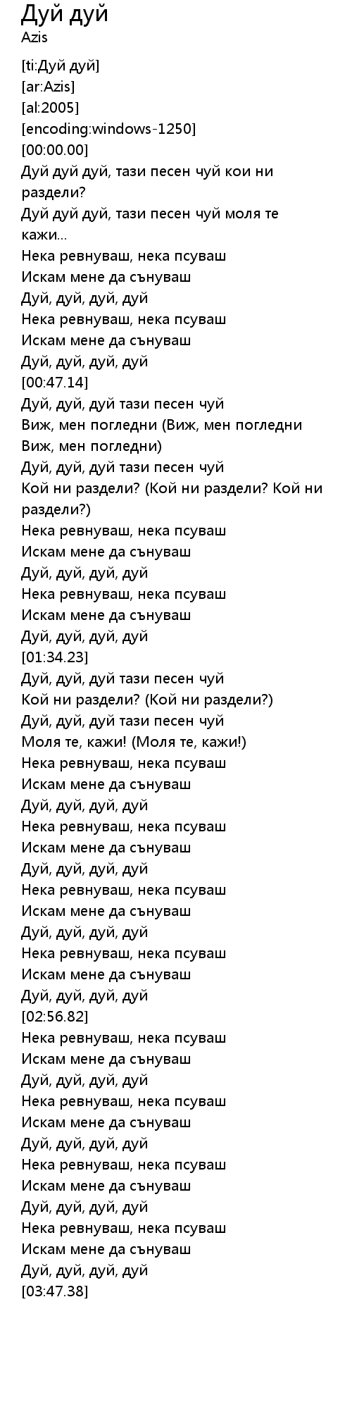 Дуй дуй дуй, тази песен чуй моля те кажи... |