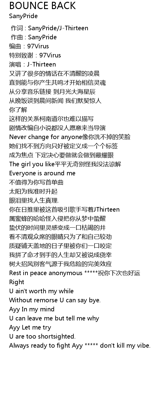 | [00:00.000] | 作词 : SanyPride/J-Thirteen |