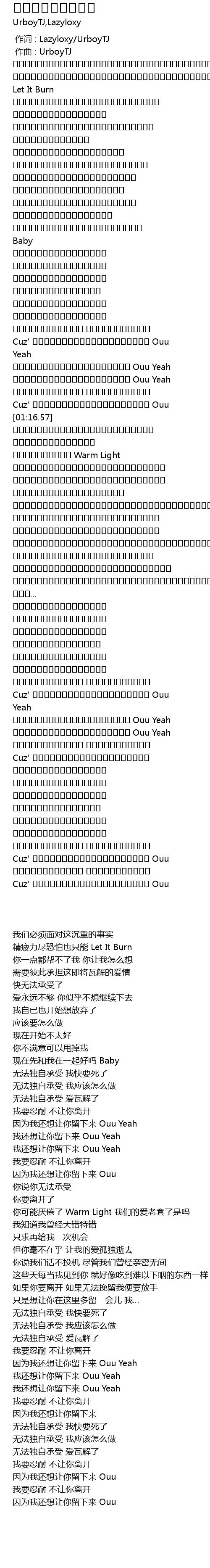 | [00:00.000] | 作词 : Lazyloxy/UrboyTJ |