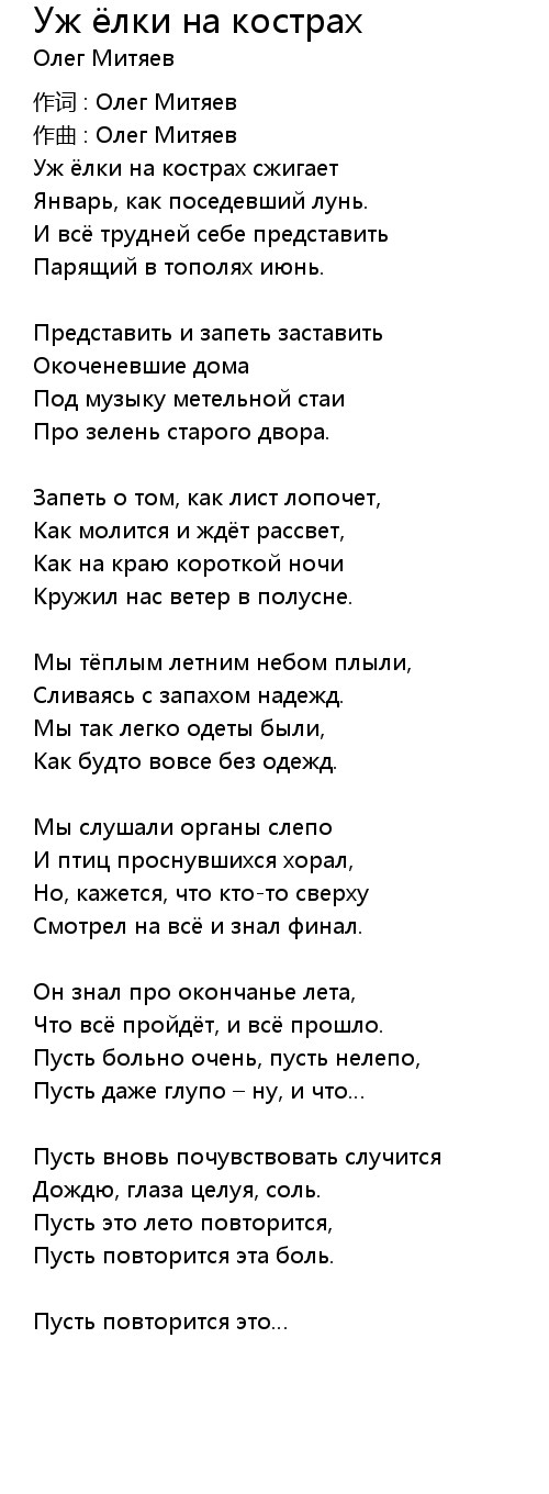 Уж ёлки на кострах 歌词