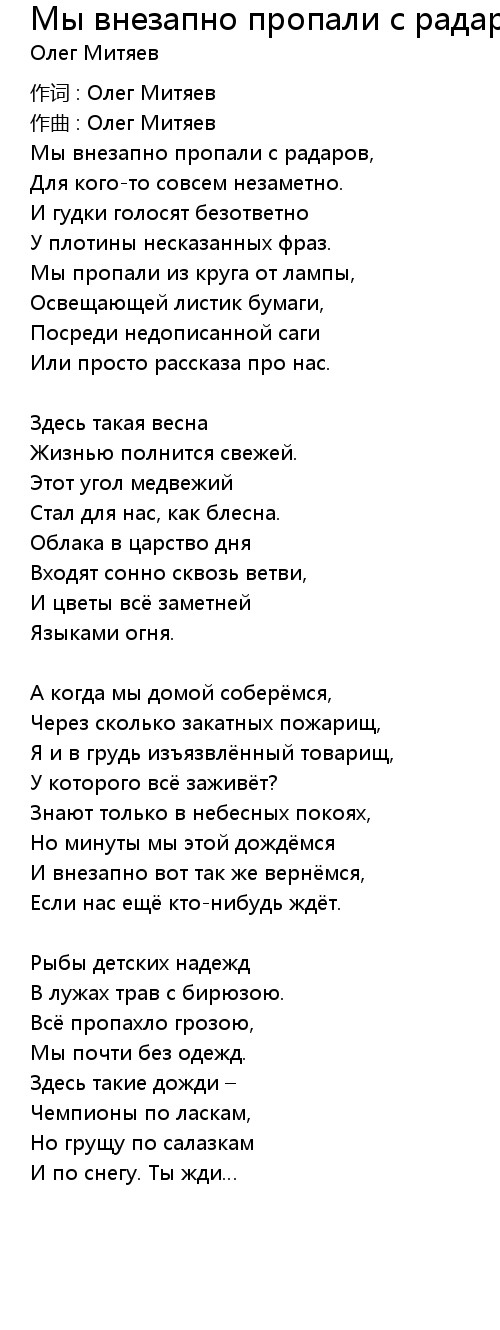 作词 : Олег Митяев |