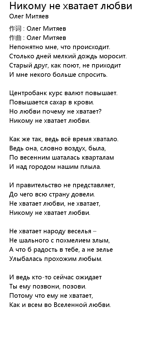 作词 : Олег Митяев |