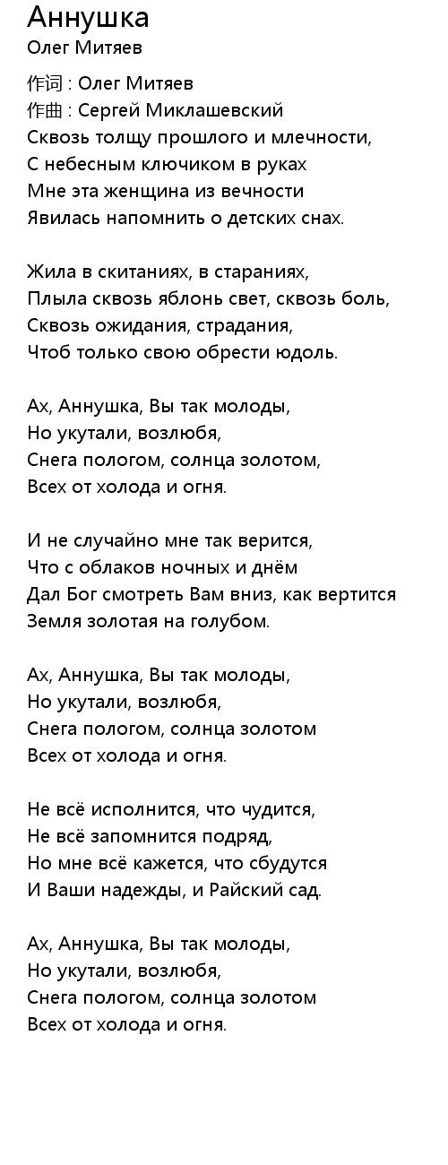 Ах, Аннушка, Вы так молоды, |