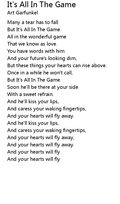 It's All In The Game 歌词