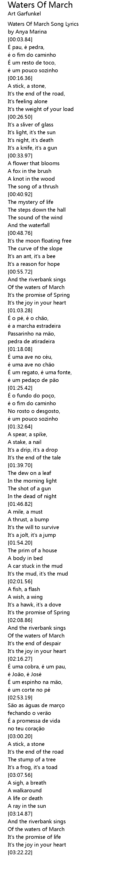 | [03:17.27] | Of the waters of March |