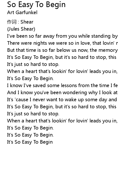 | It' s So Easy To Begin, but it' s so hard to stop, this love, | |