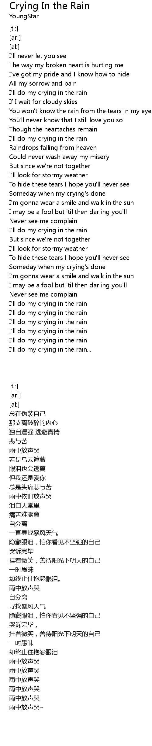 [03:17.99] I'll do my crying in the rain...