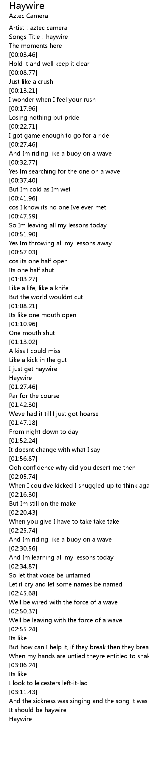 | [01:20.65] | Haywire |