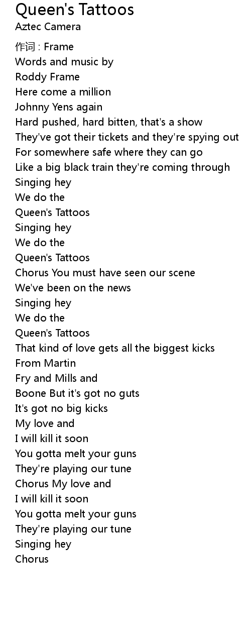 | 歌曲 | Queen's Tattoos |